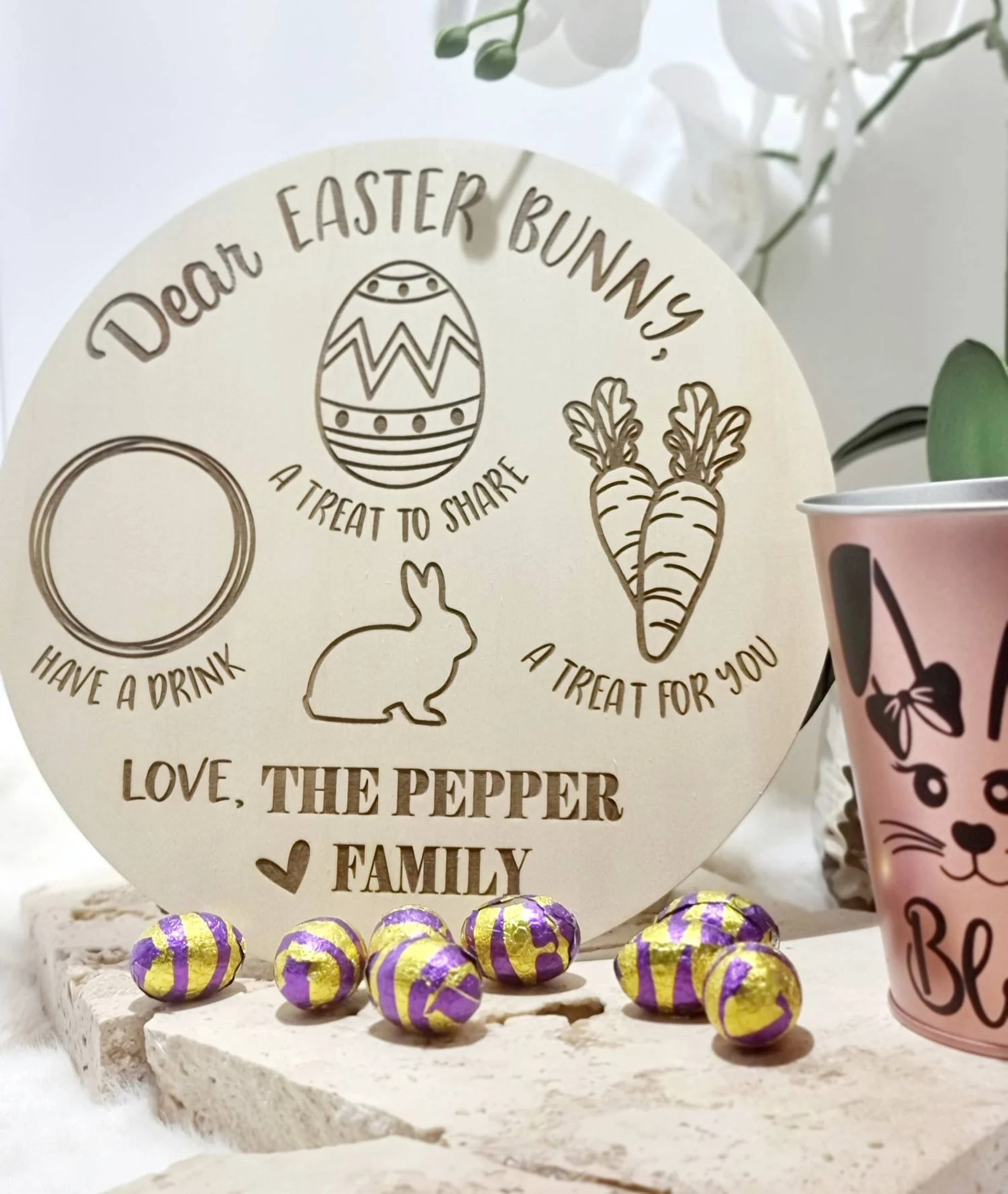 Leave the Easter Bunny some well-deserved treats with our gorgeous Personalised Treat Boards. Perfect to get your little ones excited for the Easter Bunny’s arrival. Such a fun item to have for the kids.