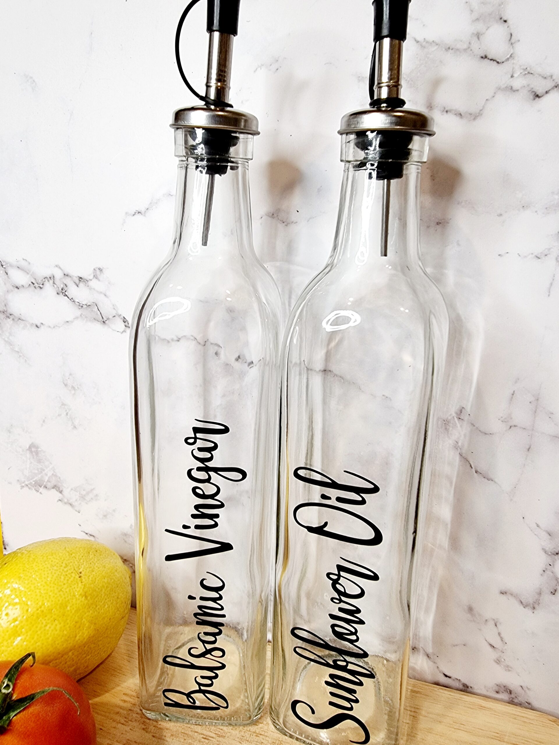 Personalised oil/vinegar dispensers (450ml glass bottle)