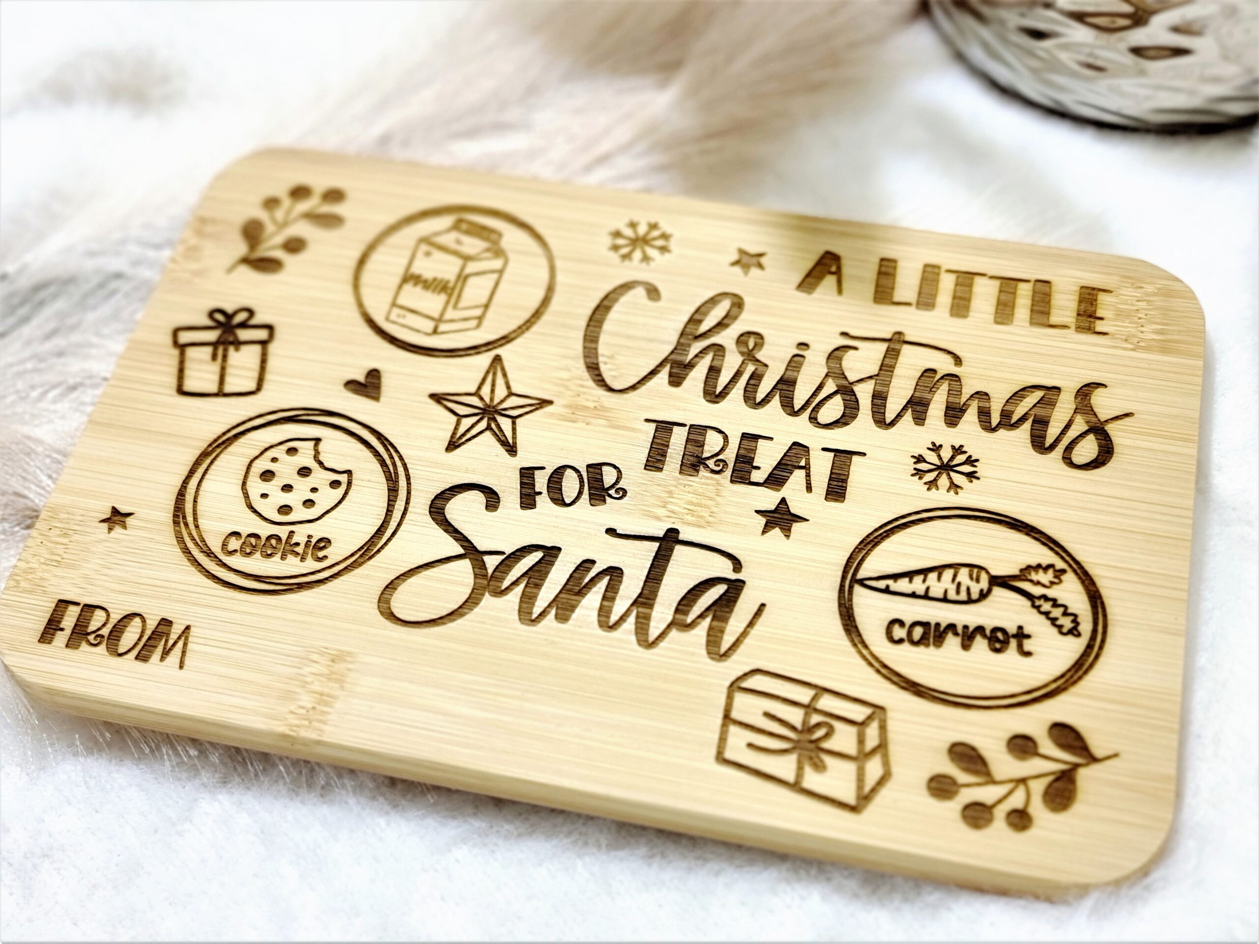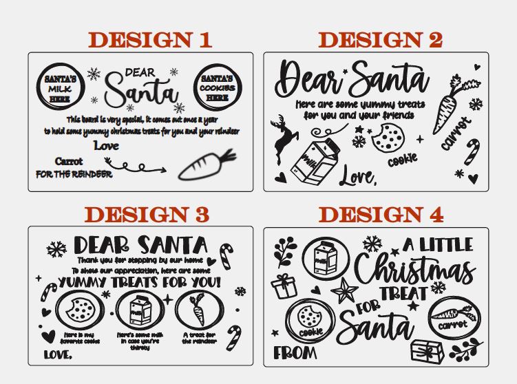 These boards can be used year after year. A great way to serve Santa a treat whilst he visits. See your kids faces light up when it is time to put the tray out the night before Xmas.