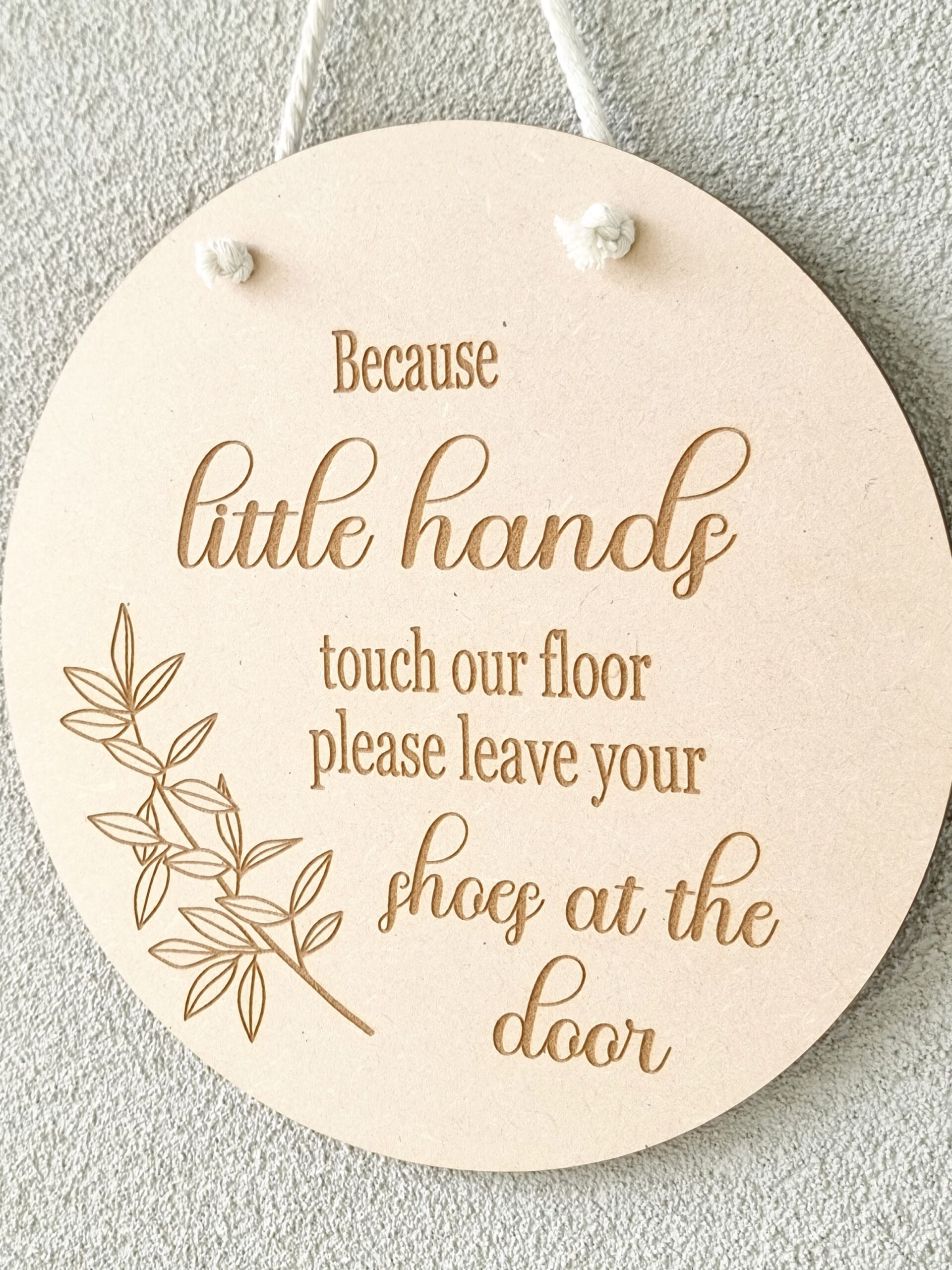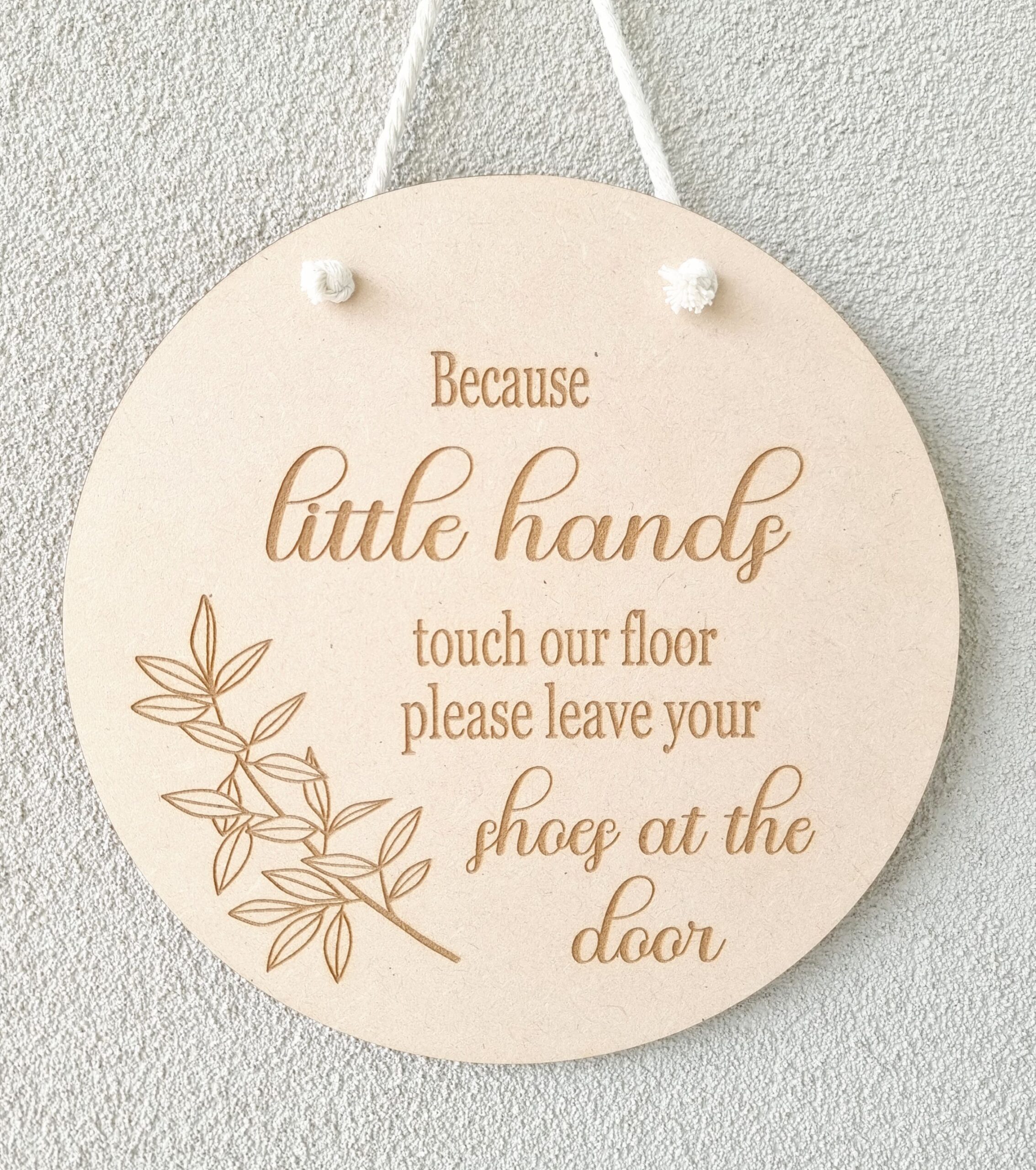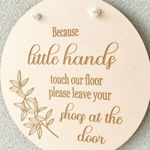 Add a warm and welcoming touch to your entryway with this beautifully crafted “Leave Your Shoes at the Door” sign.