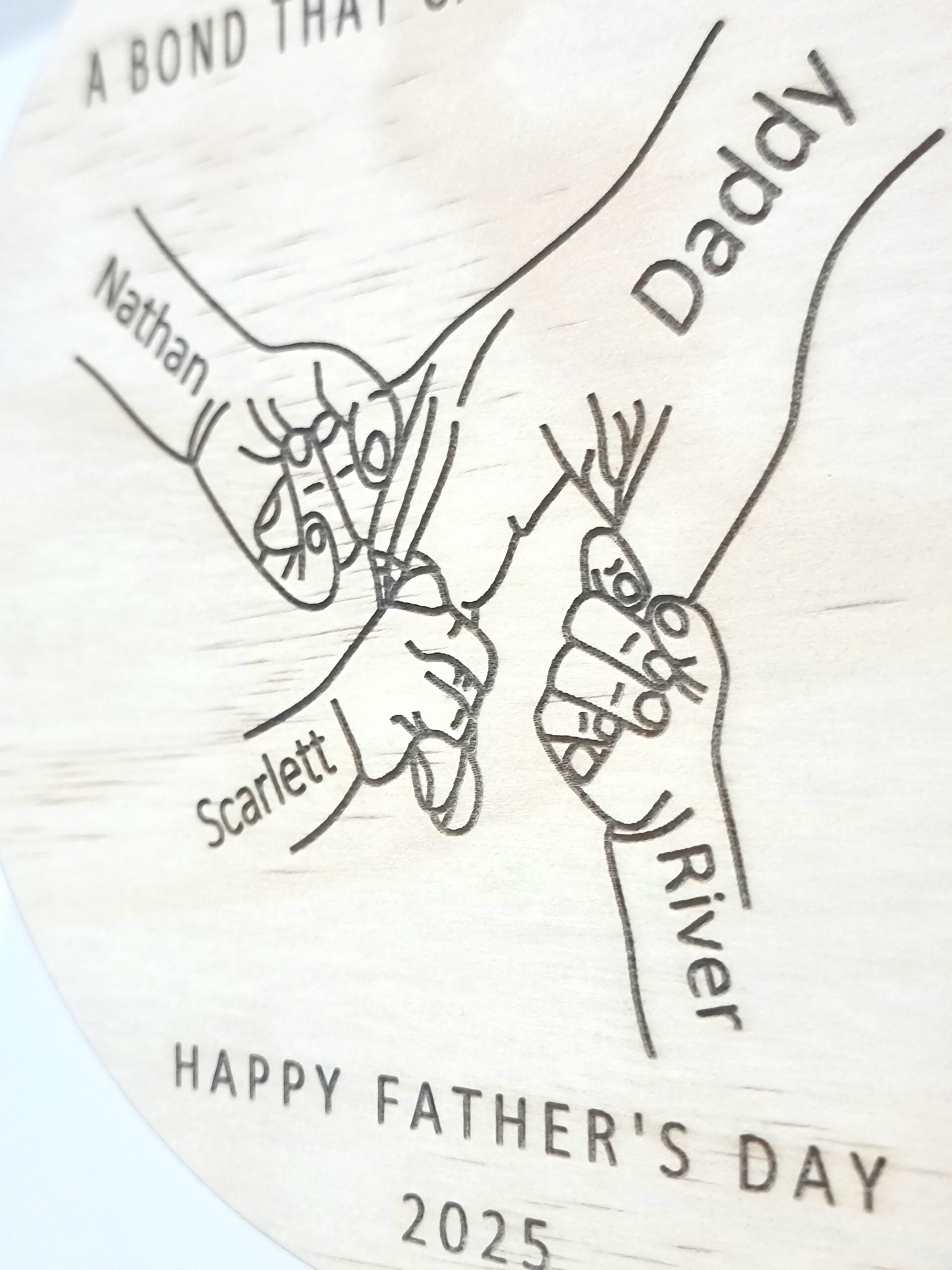 Celebrate the special bond between Dad and his little ones with this beautifully crafted Personalised Round Plaque.