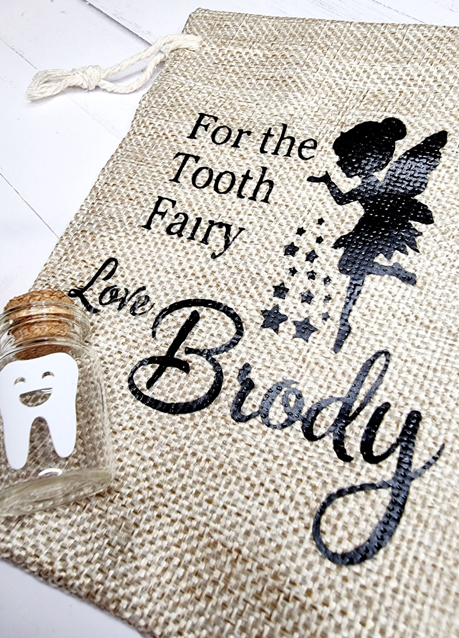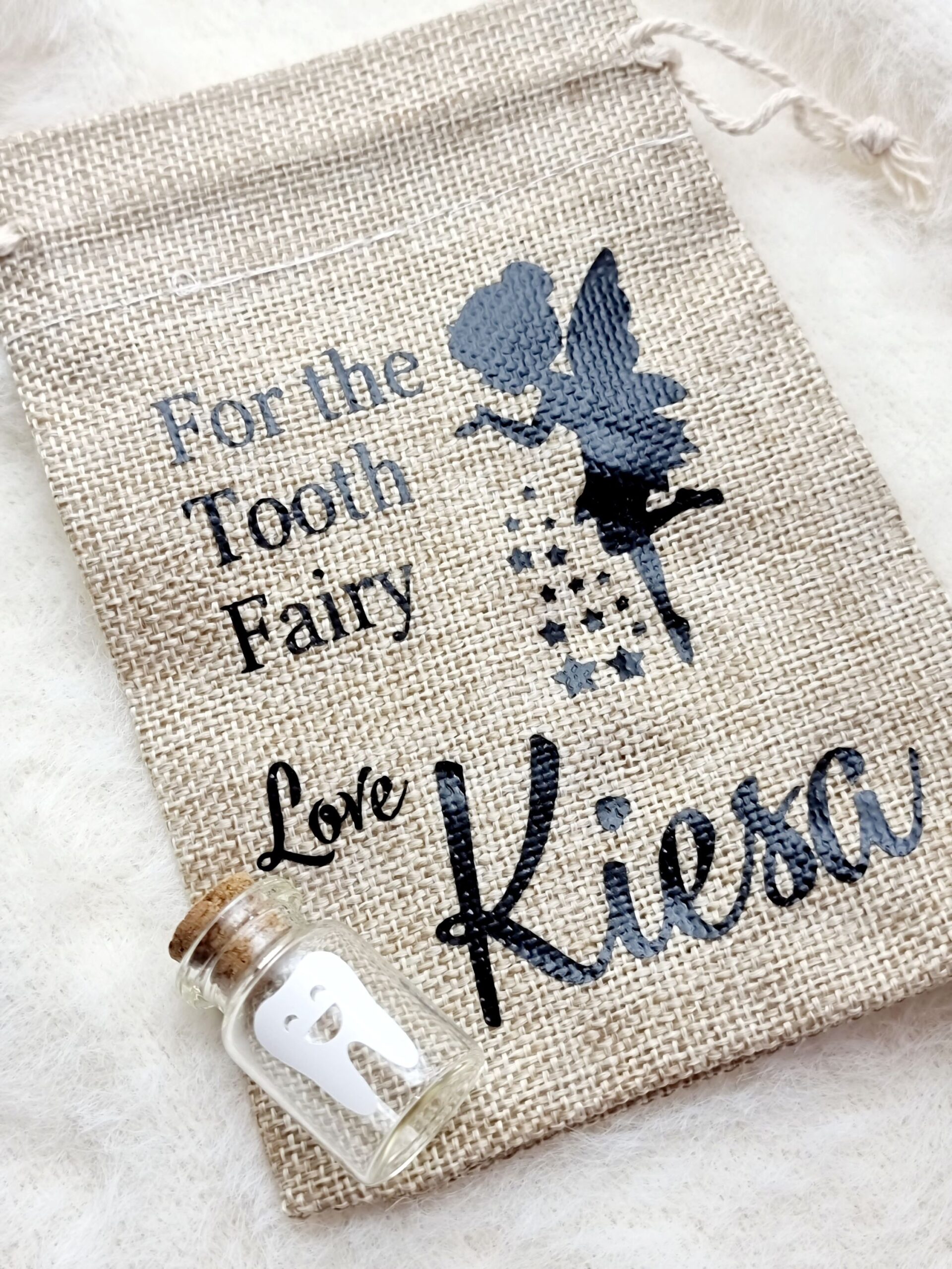 Cute personalised tooth fairy bag & jar for your little ones to pop their tooth in and put under their pillow for the tooth fairy.